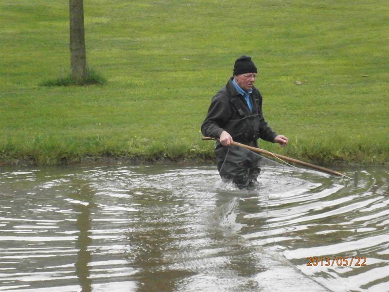 Met volle moed en het nodige materiaal op naar de vijver in St. Agatha. Helaas, magere vangst van maar 12 voorntjes.